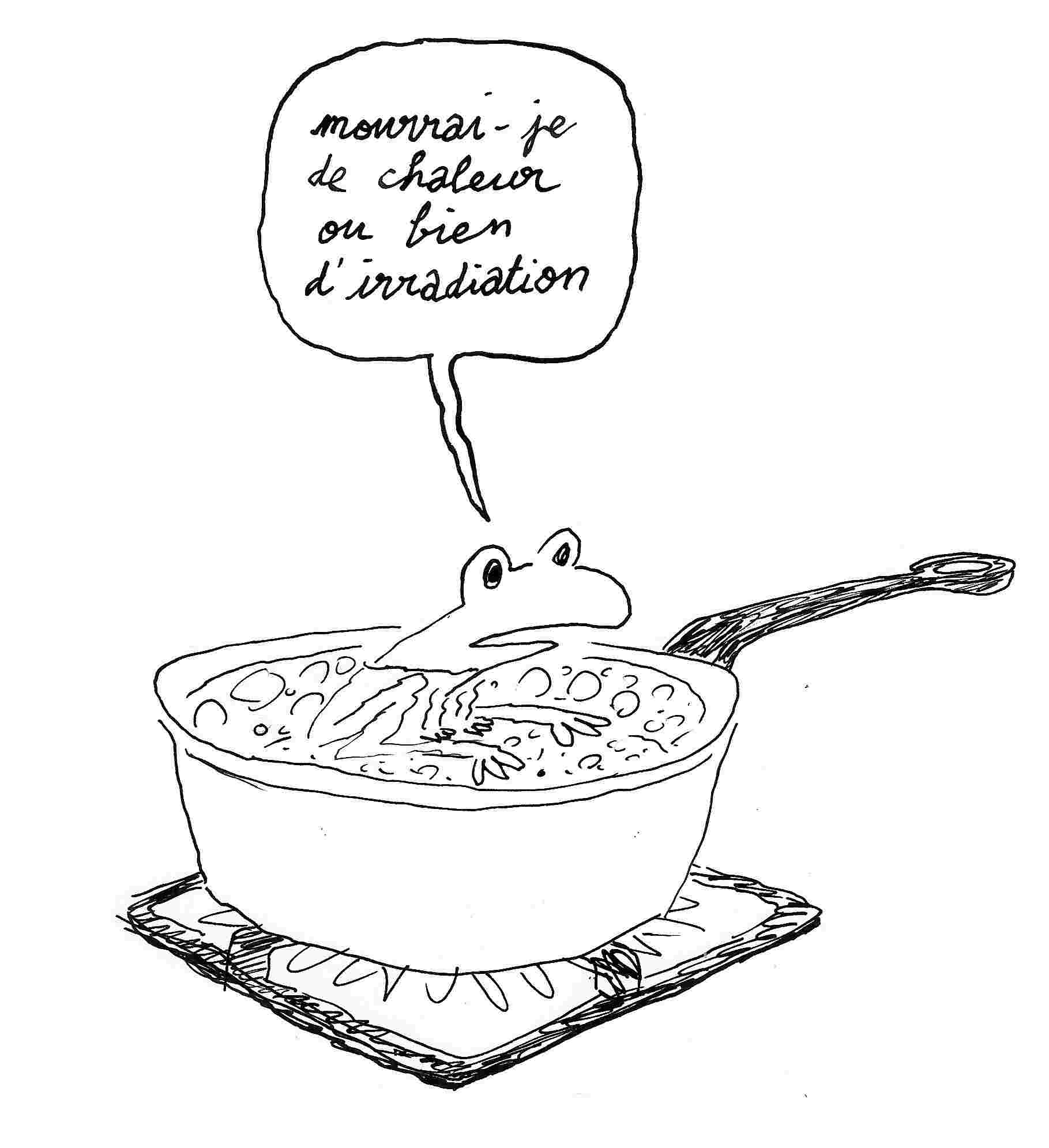 On n’attendra pas 24h pour que débarquent le directeur du labo et l’assistante de direction : « Nous n’avons pas le choix, c’est pour votre sécurité. » Le bâtiment est badgé, à certains endroits à deux niveaux : on doit donc comprendre que l’hypothétique terroriste venu voler les secrets scientifiques de la montre connectée de F. verrait son entreprise entravée par un bout de papier ? « Bien sûr qu’on a le choix, rétorque-t-on, on a toujours le choix ! On a le choix de se sentir ailleurs que sous le régime de Vichy quand on vient au travail ! » Sur quoi on nous affirme, façon grenouille dans l’eau tiède, que « ce n’est pas grand chose ». Quand on devra chanter la Marseillaise avant d’entrer au labo, ce ne sera sûrement pas grand-chose non plus. Vous exagérez, c’est ainsi et puis c’est tout. On va vous remettre une affiche neuve.