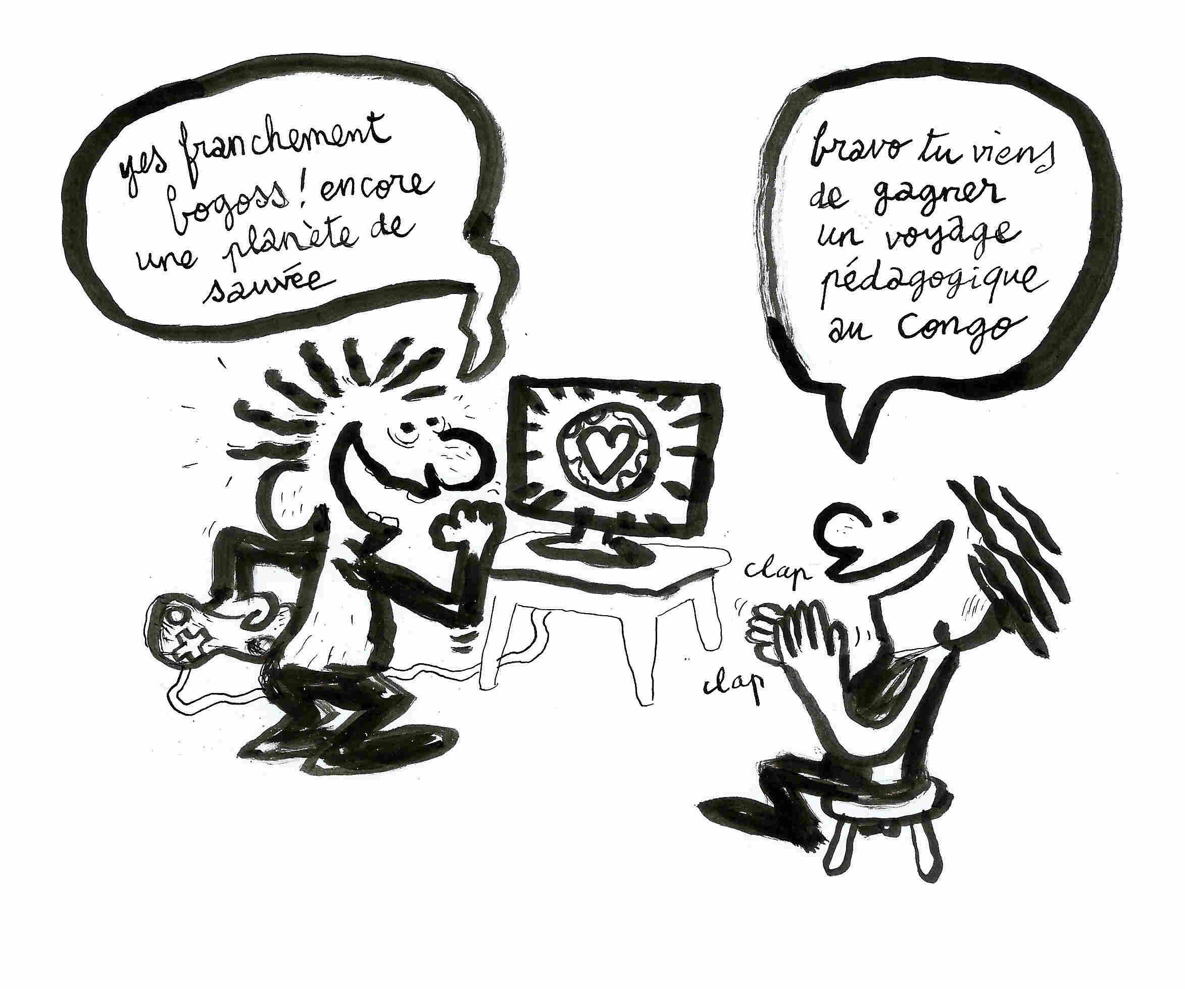 Qu’est-ce qu’on doit comprendre ? Que les étudiants de la fac sont tellement abrutis par les jeux vidéos qu’il faut en passer par le jeu pour communiquer avec eux de sujets aussi graves ? Qu’on peut se permettre la légèreté de « jouer » à être complice averti de la barbarie numérique ?