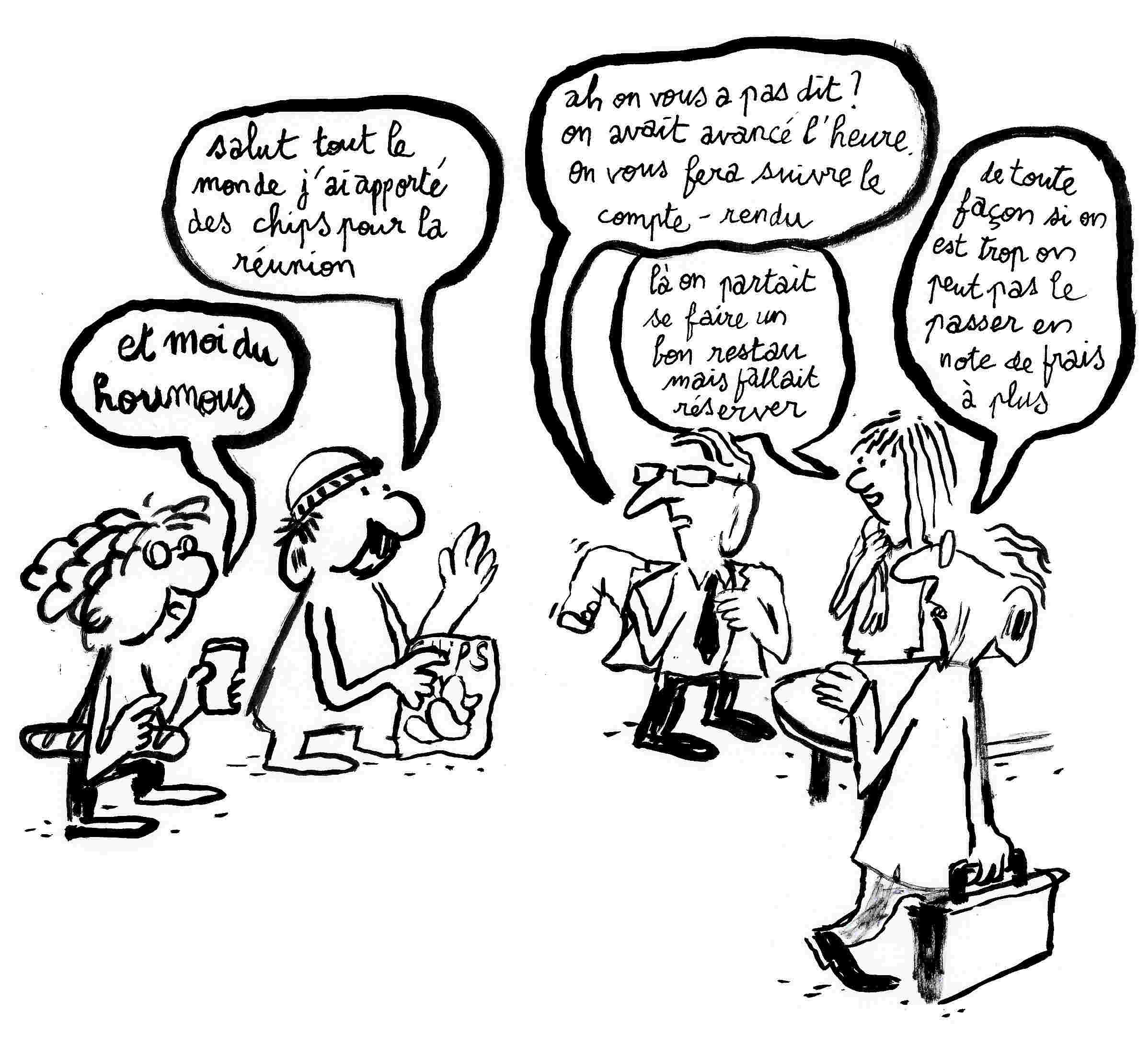 Ainsi la majorité de l’argent destiné à améliorer l’accès à une alimentation de qualité et/ou à mieux rémunérer le travail des paysans locaux part en réalité dans des salaires d’animateurs et de rédacteurs de jolis rapports aux financeurs, des réunions de co-construction, un système informatique qui centralise les données, etc. Parmi les grands artisans de la solution municipale, il y a notamment Aequitaz, association se définissant comme des « artisans de justice sociale » et assurément experts en blablas pseudo-participatifs en tous genres. Un de ses cofondateurs, Jérôme Bar, très actif dans les manigances grenobloises autour de la SSA, vend maintenant des stages pour « créer un collectif et agir pour le droit à l’alimentation » – 1 050 euros les trois jours. Vu comment le collectif grenoblois s’est déchiré, pas sûr que ça vaille le coup…